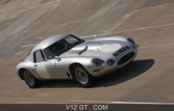 Accueil V12 GT / Les plus belles photos de GT et de Classic. / Photos Classic / Jaguar / Jaguar Type E Low Drag gris Montlhéry 3/4 avant droit travelling 5