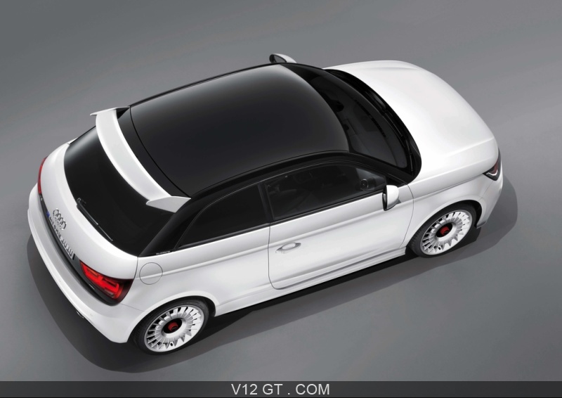 Accueil V12 GT / Les plus belles photos de GT et de Classic. / Photos GT / Audi / Audi A1 Quattro blanc 3/4 arrière droit vue de haut penché