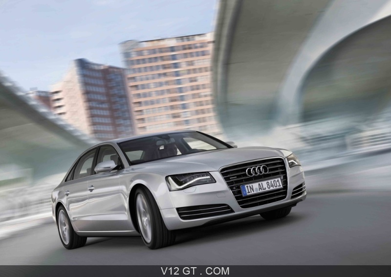 Accueil V12 GT / Les plus belles photos de GT et de Classic. / Photos GT / Audi / Audi A8 L gris 3/4 avant droit travelling penché 2