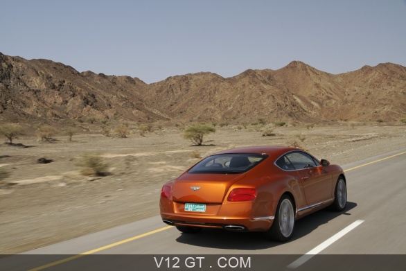 Accueil V12 GT / Les plus belles photos de GT et de Classic. / Photos GT / Bentley / Bentley Continental GT orange 3/4 arrière droit travelling penché