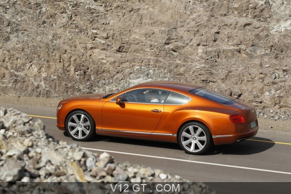 Accueil V12 GT / Les plus belles photos de GT et de Classic. / Photos GT / Bentley / Bentley Continental GT orange 3/4 arrière gauche penché vue de haut