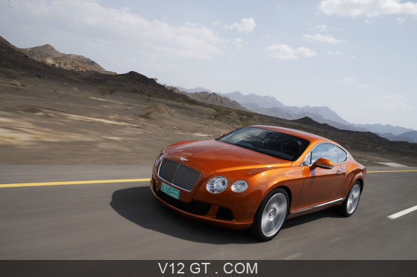 Accueil V12 GT / Les plus belles photos de GT et de Classic. / Photos GT / Bentley / Bentley Continental GT orange 3/4 avant gauche travelling penché
