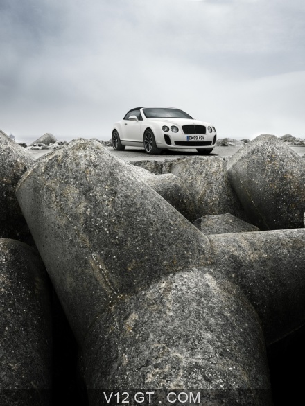 Accueil V12 GT / Les plus belles photos de GT et de Classic. / Photos GT / Bentley / Bentley Continental Supersports Convertible blanc 3/4 avant droit capotée debout