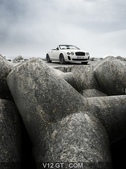 Accueil V12 GT / Les plus belles photos de GT et de Classic. / Photos GT / Bentley / Bentley Continental Supersports Convertible blanc 3/4 avant droit debout