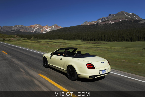 Accueil V12 GT / Les plus belles photos de GT et de Classic. / Photos GT / Bentley / Bentley Continental Supersports Convertible jaune 3/4 arrière gauche travelling