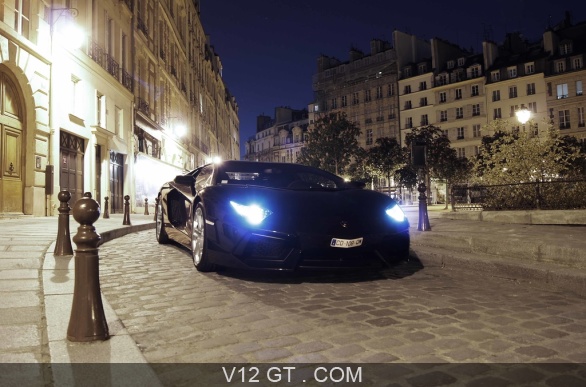 Accueil V12 GT / Les plus belles photos de GT et de Classic. / Photos GT / Lamborghini / Lamborghini Aventador noir 3/4 avant droit