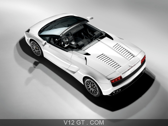 Accueil V12 GT / Les plus belles photos de GT et de Classic. / Photos GT / Lamborghini / Lamborghini Gallardo LP560-4 Spyder blanc 3/4 arrière gauche vue de haut