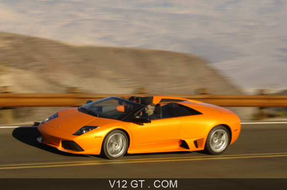 Accueil V12 GT / Les plus belles photos de GT et de Classic. / Photos GT / Lamborghini / Lamborghini Murcielago LP640 Roadster orange 3/4 avant gauche filé 3