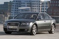 Ausi S8 gris 3/4 avant gauche travelling penché