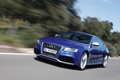 Audi RS5 bleu 3/4 avant gauche travelling penché