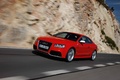 Audi RS5 rouge 3/4 avant gauche travelling penché 2